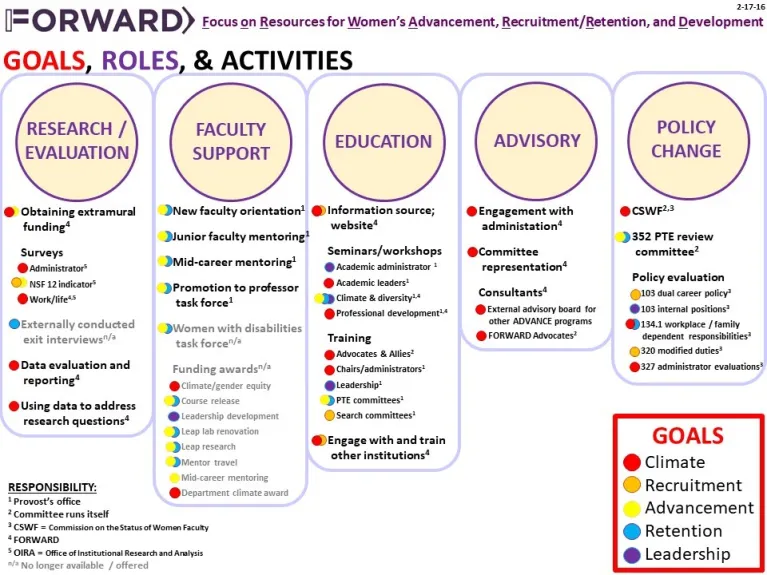 ABOUT NSF ADVANCE FORWARD PROJECT: Provided funding for comprehensive and sustainable institutional transformation to increase participation of tenure-track and tenured women faculty. Specifically, the ADVANCE FORWARD project strived to :