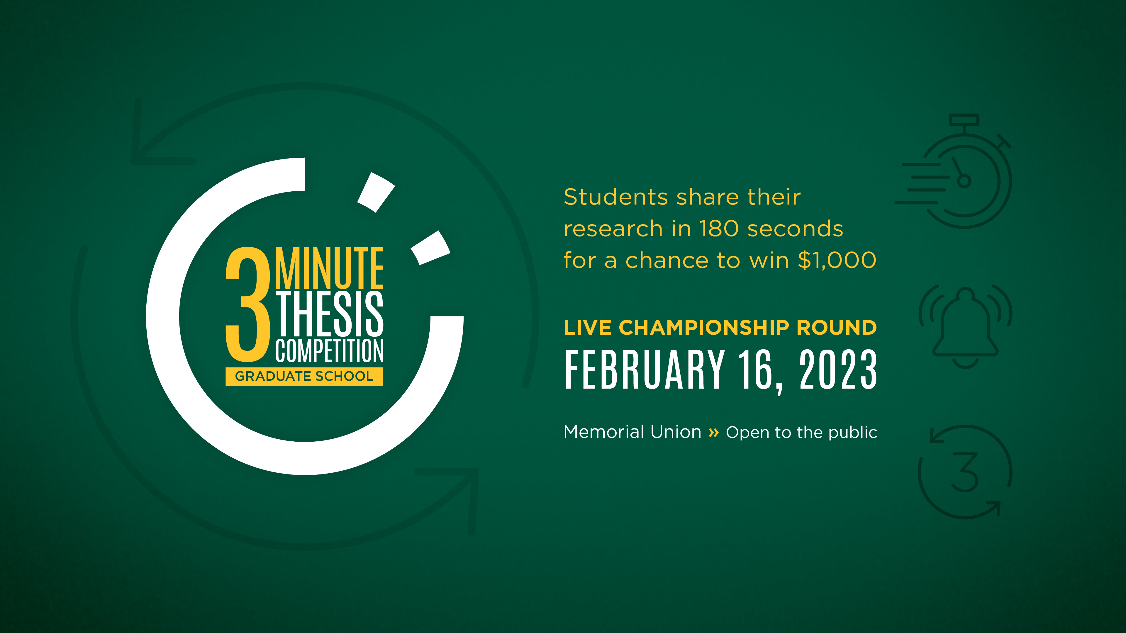 If you have questions about 3MT, please contact the Graduate School at ndsu.gsa@ndsu.edu.