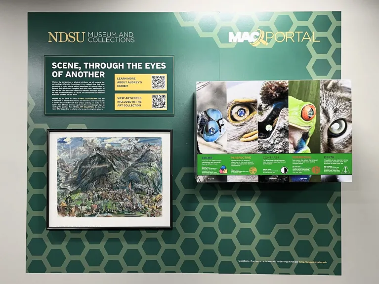 This Portal explores the way different organisms might "see" or "experience" a piece of artwork. When you look through a small hole, you are able to see an interpretation of how a bird might look at something differently than a tree frog.