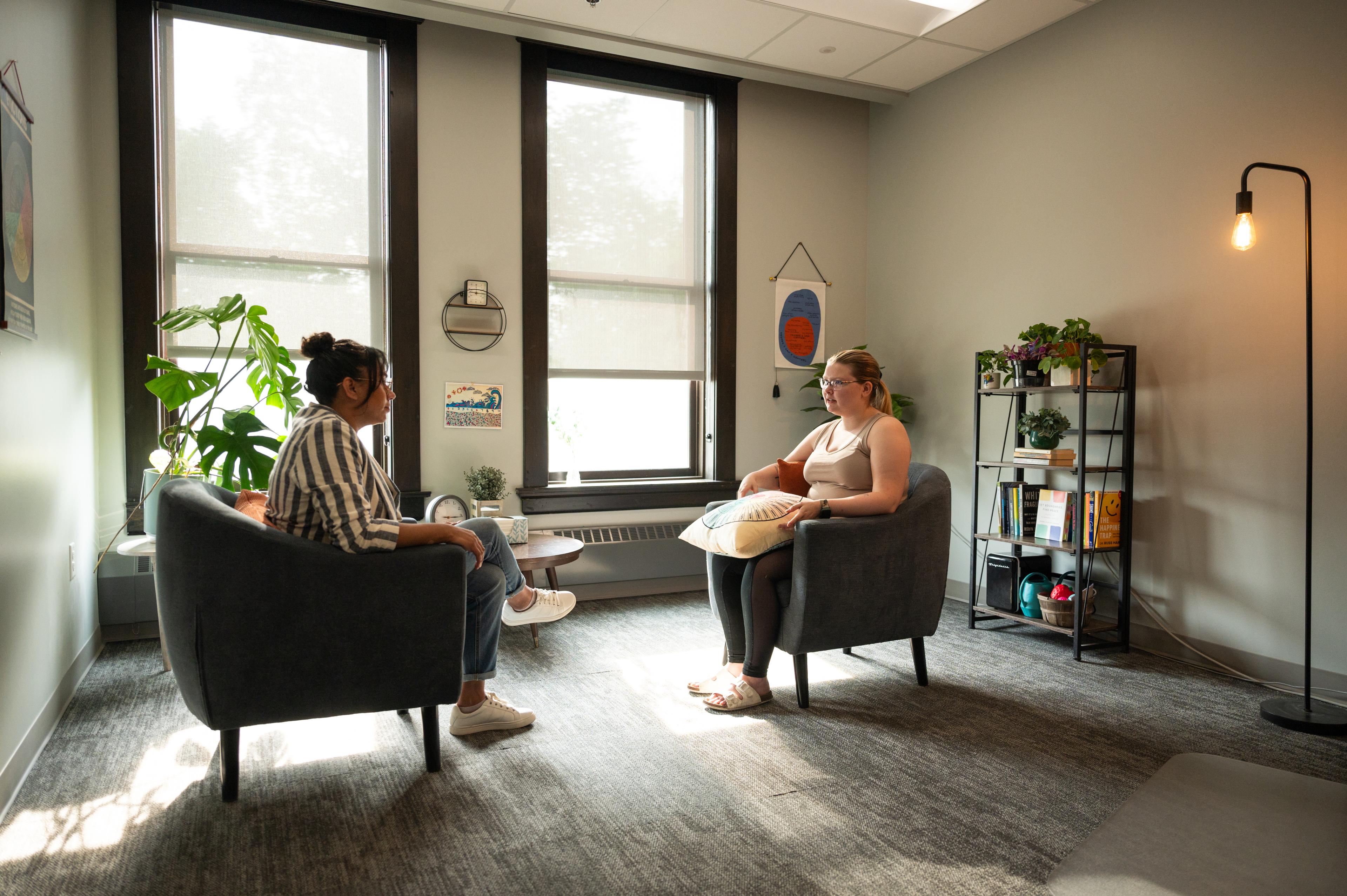 Improvements made to the Counseling Center include the addition of a relaxation room, a larger and more comfortable waiting room, removal of florescent lighting and office insulation and white noise broadcast to ensure student privacy during individual sessions.