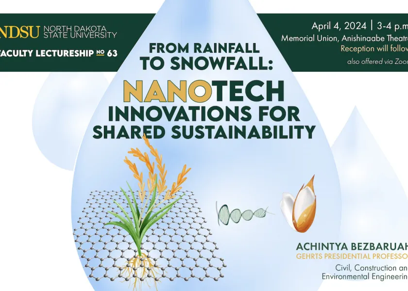 Bezbaruah’s lecture, “From Rainfall to Snowfall: Nanotech Innovations for Shared Sustainability,” is scheduled for Thursday, April 4, from 3 p.m. to 4 p.m. in the Memorial Union Anishinaabe Theater. The presentation also will be available on Zoom. A reception is slated to follow in the Butte Lounge.