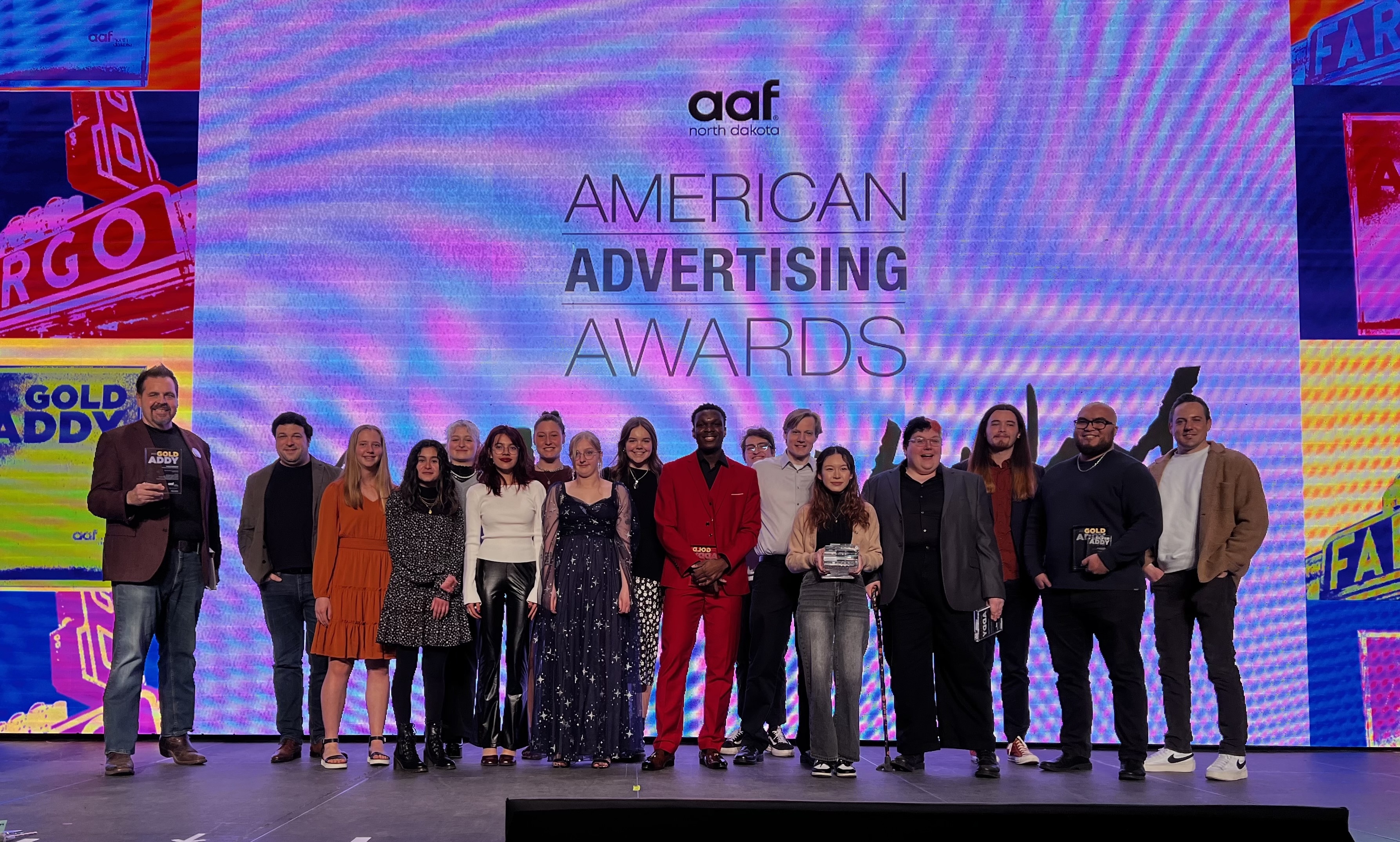 The students won a total of 10 awards, which Andrew Stark, assistant professor of practice in the NDSU department of visual arts, said is a record. The students also set a record for the total number of gold ADDYS awarded.