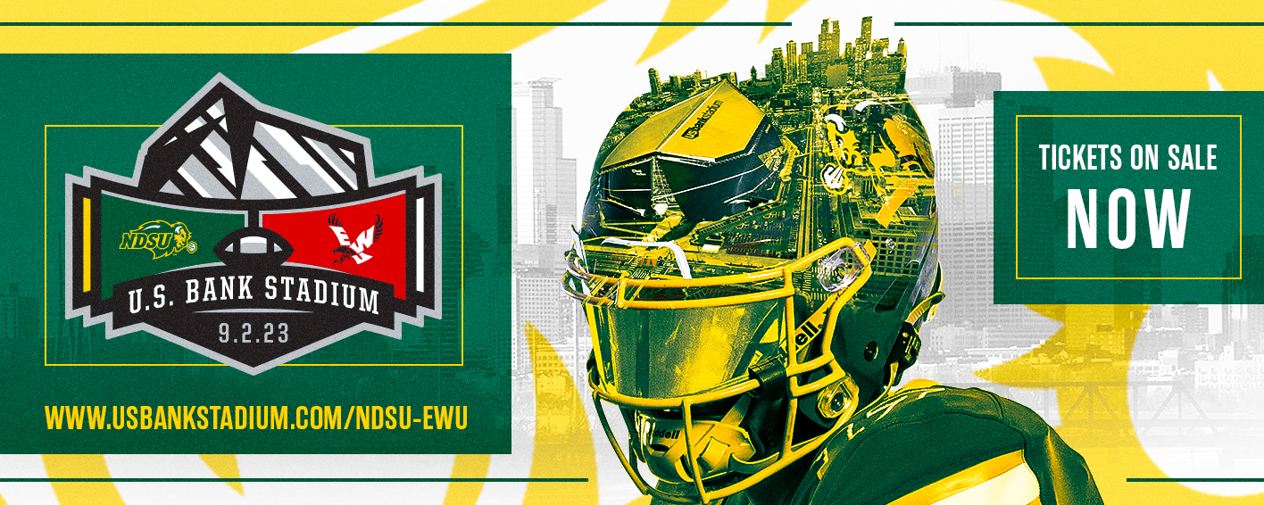 Tickets are available for NDSU’s 2023 season opening football game against Eastern Washington University on Saturday, Sept. 2, at U.S. Bank Stadium in Minneapolis. The matchup will be the first collegiate football game to be played at the home of the Minnesota Vikings.