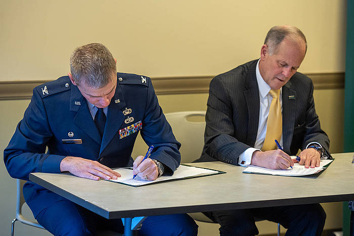NDSU and the North Dakota Air National Guard have entered into a memorandum of understanding to better serve the research, service, educational and workforce needs of North Dakota. The goal is to provide quicker pathways for military students to earn their degrees by recognizing previously completed course work from a recognized military institution.