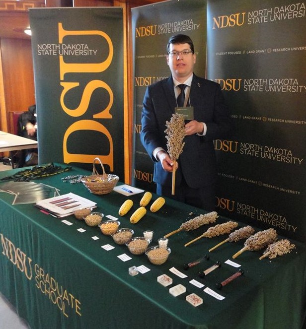 NDSU provided many opportunities to improve myself by organizing various seminars, conferences, symposiums and other professional opportunities. During my NDSU plant science career, I actively participated in more than 20 oral, poster or showcase display presentations. My first memorable moment was winning the People’s Choice Award for Best Display at the NDSU Graduate Student Showcase in 2019. Accepting applause and congratulations in front of an audience was a unique feeling. My academic success helped me become a nominee to showcase my white edible grain sorghum research at the North Dakota University System Legislative Showcase at the State Capitol Building in Bismarck in 2019. I talked to more than 65 people and 12 legislators to explain why my research is important for North Dakota, farmers, community health and for the life improvement of future generations. I appreciate NDSU staff, faculty and friends that helped me find and improve myself at NDSU.