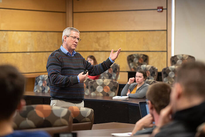 “On the first day of class, I tell my students that I have a fairly laidback teaching style, but high expectations for myself, as an instructor, and for them, as students,” Olson said. “I will teach them the core concepts, theories or processes and also use examples (tell stories) to reinforce the concepts. I also tell them that five years from now they may not remember all the details of the concepts, but they will likely remember the stories.”