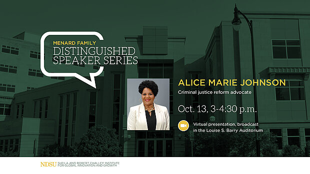 “We’re delighted to welcome Alice Marie Johnson to NDSU. Her story is inspiring, and it has led many to call for a more serious look at criminal justice reform in America,” said Scott Beaulier, Ronald and Kaye Olson Dean of Business at NDSU. “As an Institute focused on opportunity for all, we hope Alice’s message of never giving up – even after 21 years in prison – will encourage our students and community.”