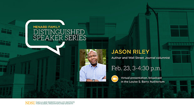 NDSU’s Sheila and Robert Challey Institute for Global Innovation and Growth is set to host author and Wall Street Journal columnist Jason Riley on Wednesday, Feb. 23. The event is part of activities organized by the Challey Institute to celebrate Black History Month.