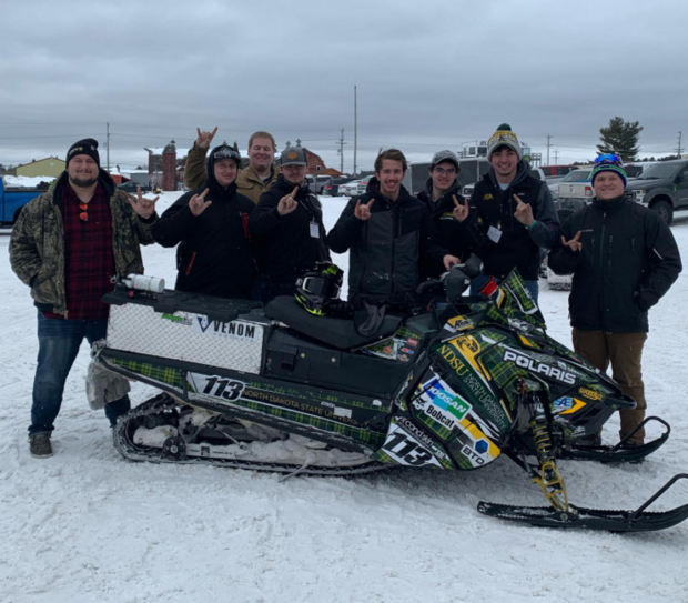 A team of NDSU engineering students earned several honors at the 2022 SAE International Clean Snowmobile Challenge, held March 1-3 in Eagle River, Wisconsin. NDSU took second place in the diesel engine category and won awards for best handling and best fuel efficiency. The NDSU team was the only diesel team to complete the 100-mile endurance event.