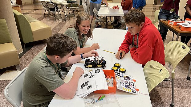 Campers are placed in groups based on their current skills in programming, cybersecurity and robotics, allowing both beginning and more advanced students to join the camp. Campers also can select elective sessions in areas of their interest.