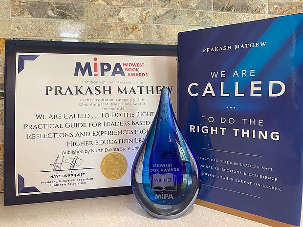 Prakash Mathew won a Midwest Book Awards prize, First Place (Gold Medal) in the Nonfiction Inspirational category for his book, “We Are Called...To Do the Right Thing: A Practical Guide for Leaders Based on Personal Reflections and Experience from a Longtime Education Leader.”