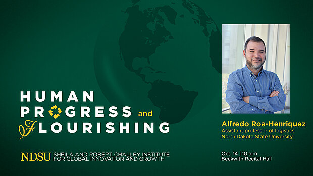 The next Human Progress and Flourishing Workshop is scheduled for Friday, Oct. 14, at 10 a.m. in Beckwith Recital Hall. NDSU faculty member Alfredo Roa-Henriquez is set to present “The Role of the Resource Sharing Resilience Tactic in the Context of Disasters and COVID-19.”
