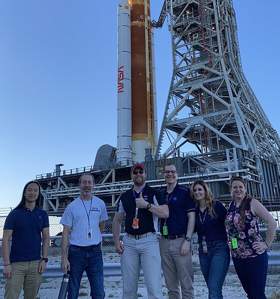 NDSU alumnus Austin Decker (third from left, with thumb up) is a team lead for NASA's Space Launch System rocket.