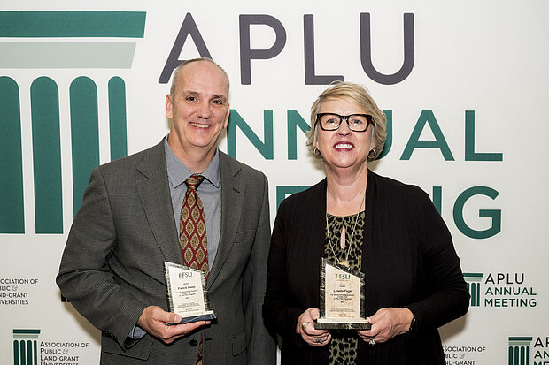 Frank Casey, North Dakota Agricultural Experiment Station associate director, and Lynette Flage, associate director for NDSU Extension, were recognized by the Association of Public and Land-grant Universities.