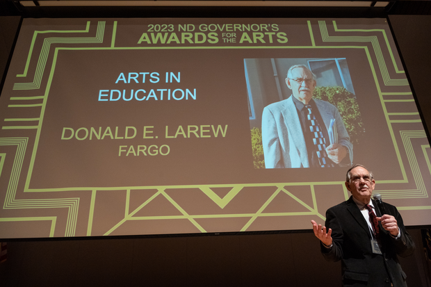 Don Larew, professor emeritus of theatre arts, received a Governor's Award for the Arts during a ceremony Feb. 1 in Bismarck, North Dakota.