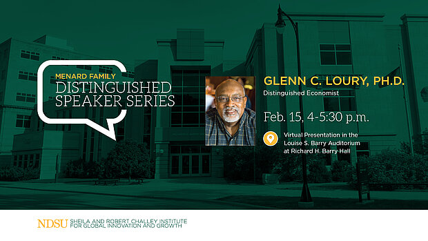 NDSU’s Sheila and Robert Challey Institute for Global Innovation and Growth is set to host a conversation with Brown University economist Glenn Loury on Wednesday, Feb. 15, at 4 p.m. at Richard H. Barry Hall.