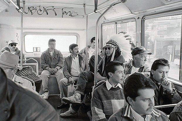 Among the eight series is perhaps Jackson’s best-known work, “Entering Zig’s Indian Reservation.” In the series, the artist uses self-portraits. Jackson’s photographs consider territorial land claims, as well as dialog between the body – his own, of tourists or the bodies of other Indigenous persons – and land, property and signification.