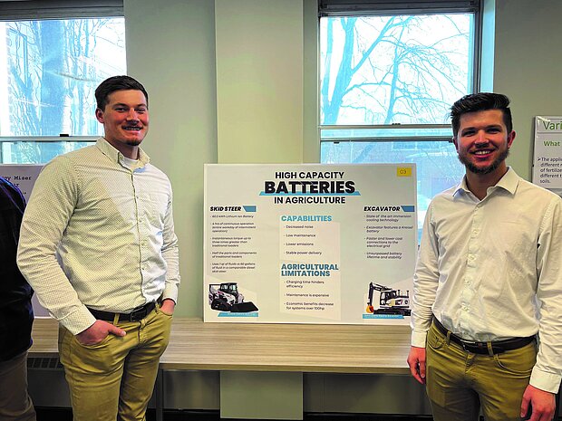 The two NDSU seniors presented their project, “High Capacity Batteries in Agriculture,” during the Feb. 11 event. Van Berkom is a precision agriculture major, while Drovdal is majoring in agribusiness.