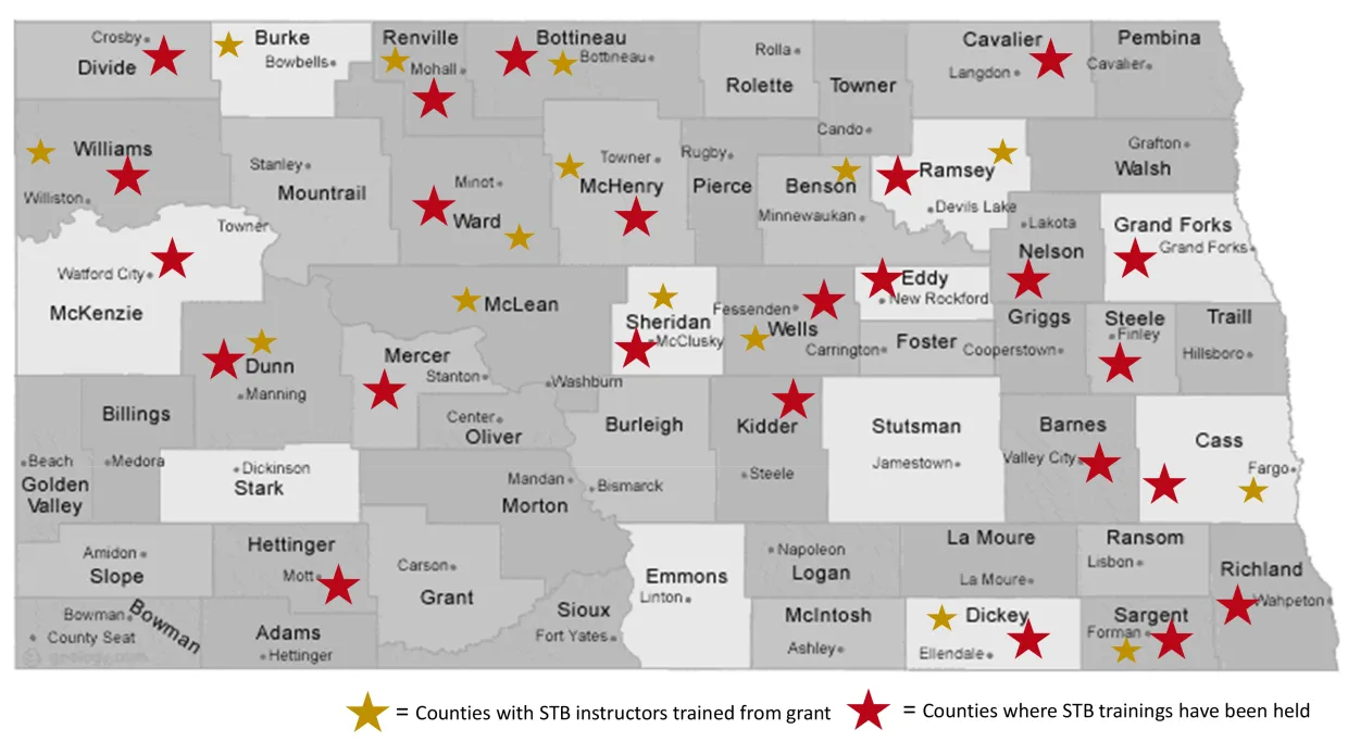 - Educate rural North Dakotans about their susceptibility to life threatening bleeds (LTB) and the benefits of learning STB skills;