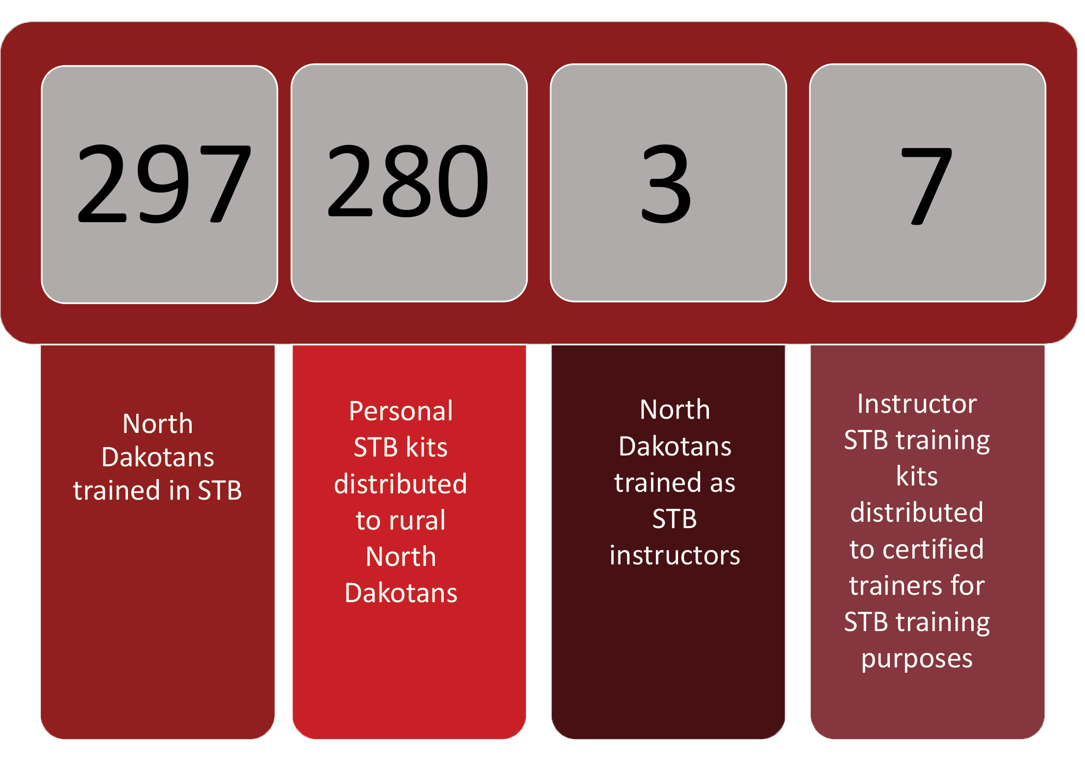 - Educate rural North Dakotans about their susceptibility to life threatening bleeds (LTB) and the benefits of learning STB skills;