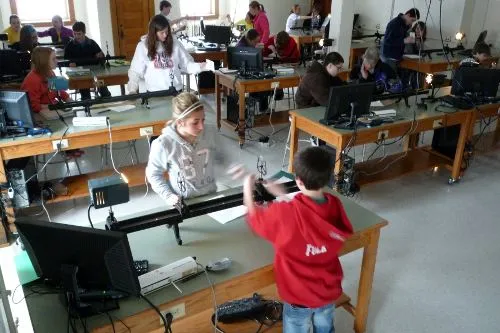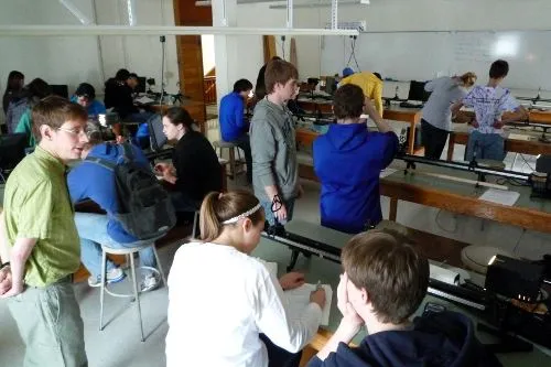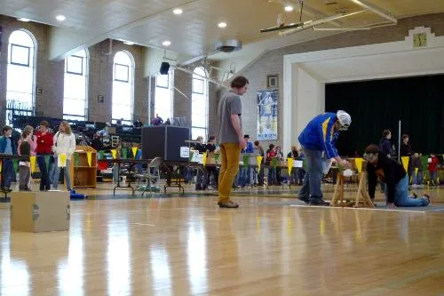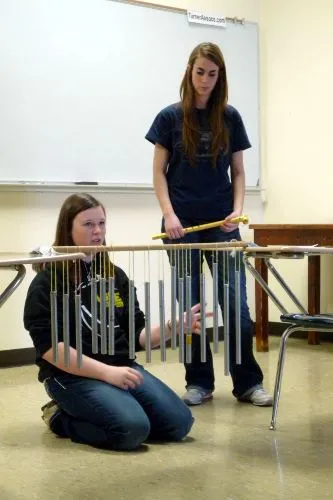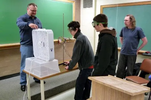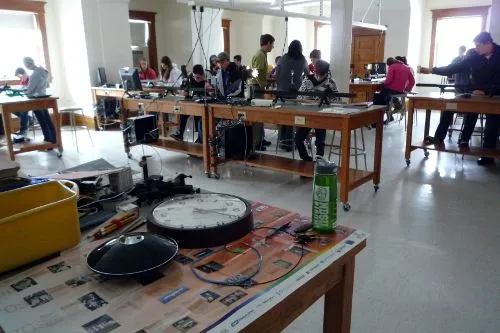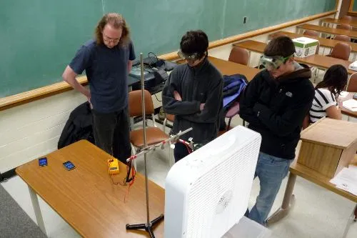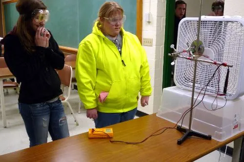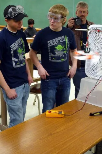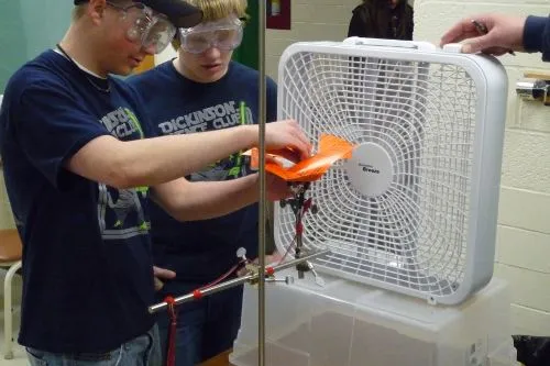 Students affix 'turbine blades' to a compact disc hub and compete on potential production.