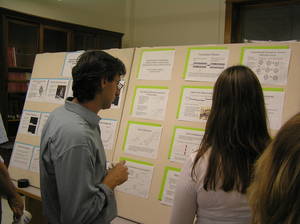 Our First Annual Undergraduate Research Poster Session took place on August 24, 2007. Undergraduates from Augsburg College, Winona State University, and NDSU attended and presented results of undergraduate research carried out the previous academic year at various REU programs. Dr. Sarah Veatch of the Department of Chemistry and Chemical Biology at Cornell University also held an invited seminar entitled "Critical fluctuations in plasma membrane vesicles". After the poster session, the participants had a chance to tour NDSU's Center for Nanoscale Science and Engineering.