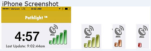 You can determine the general accuracy level of location data being sent from Pathlight at any time by looking at the bars to the right or left of the escort timer. The more green bars, the better, and yellow bars are better than more red bars. If there are no bars, location information is not being sent.