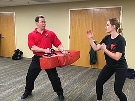 NDSU's Self-Defense Class for Women is founded on a nationally certified course called, RAD. RAD is the only existing self-defense class with a free lifetime return and practice policy, honored worldwide. RAD is the only self-defense program ever endorsed by the International Association of Campus Law Enforcement Administrators (IACLEA), National Academy of Defense Education, the National Self- Defense Institute (NSDI) and Redman Training Gear.