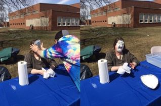 Dr. Linda Langley helping to raise money for The Boys and Girls Club of the Red River Valley by participating in Pie-a-Professor Day 2018. The event was hosted by the NDSU chapter of Delta Upsilon.