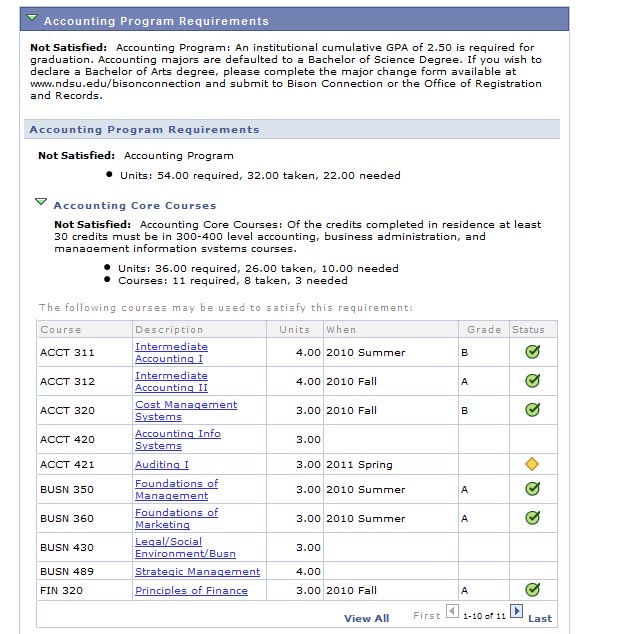 - Different sections of the "Academic Advisement Report" report can be collapsed and expanded by using either the [Collapse All] or [Expand All] buttons at the top of the report, or by clicking on the triangle icons to the left of each information segment