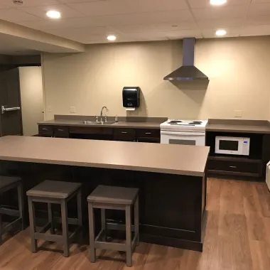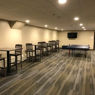 In 2016/2017, Churchill underwent a complete renovation. The entire interior of the building was demolished and remodeled to provide: new building piping, fixtures, HVAC, heating and electrical systems; added ADA access; new egress windows to allow for lower-level living and community space; increased security features; privatized bathrooms; public kitchen; additional study rooms; and a large community space and recreational area.