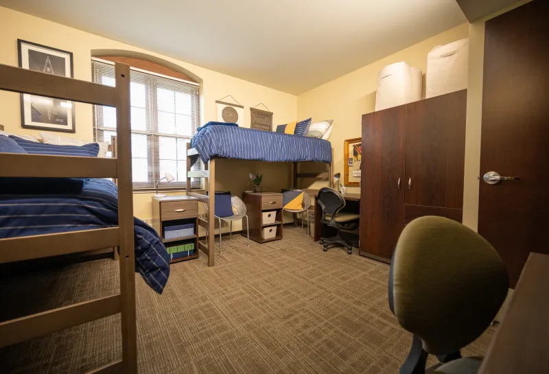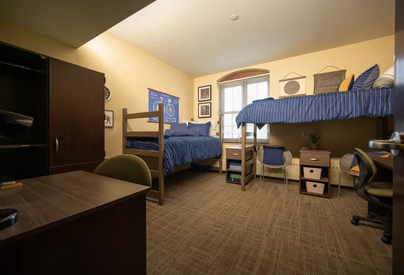 - Newly renovated traditional residence hall for first-year males, completed in Fall 2017