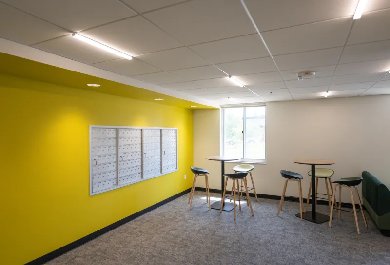 - Redesign of the entire first floor with study spaces, community lounge, and a central laundry room