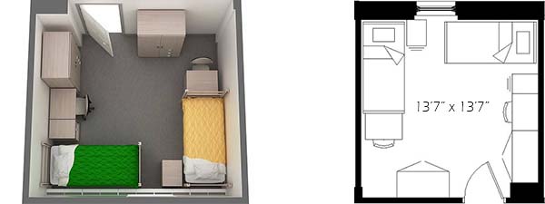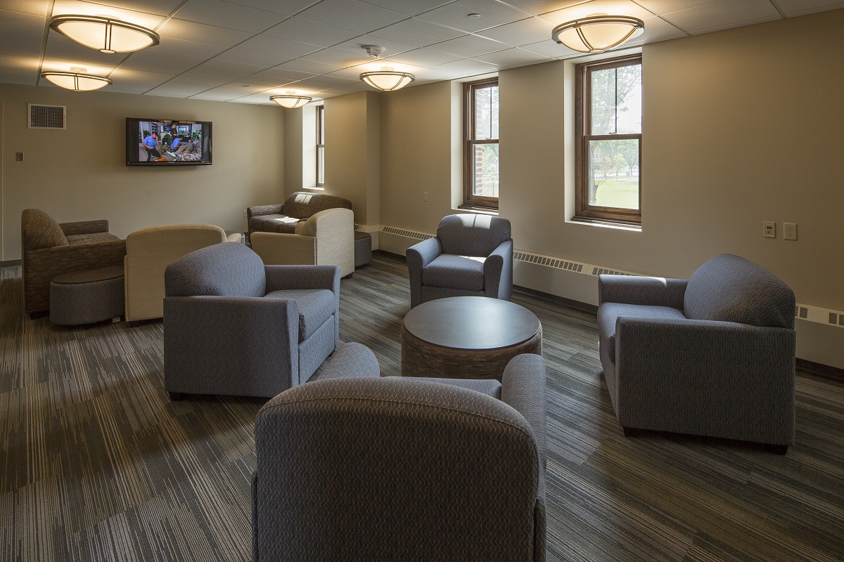 - Newly renovated traditional residence hall for first-year males, completed in Fall 2017