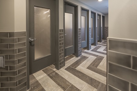 - Shared bathrooms with privatized bathroom stalls and showers on each wing of each floor; handicap accessible gender-neutral bathrooms on each wing of each floor