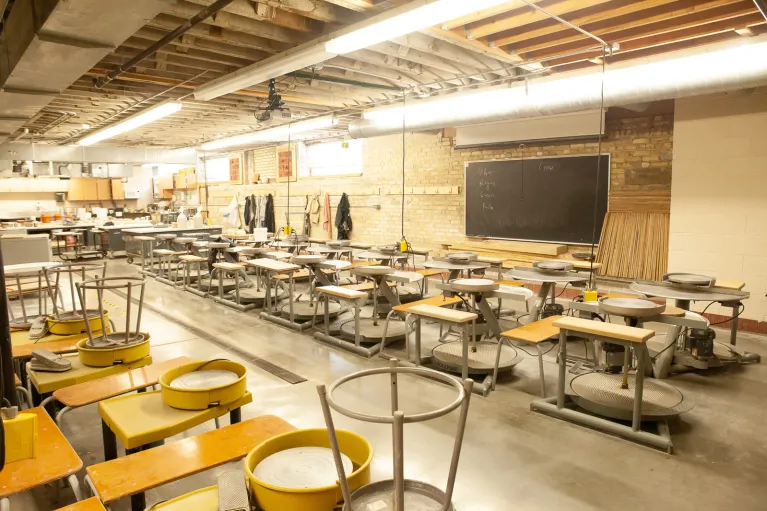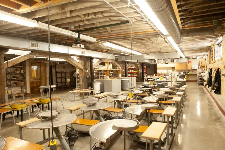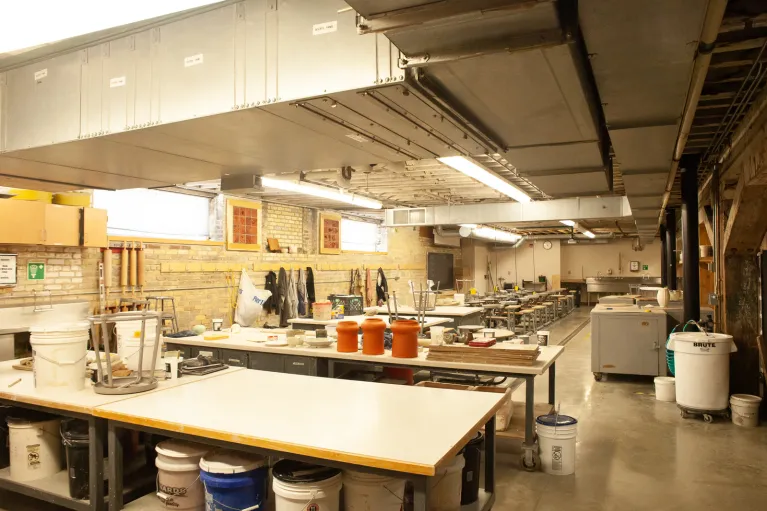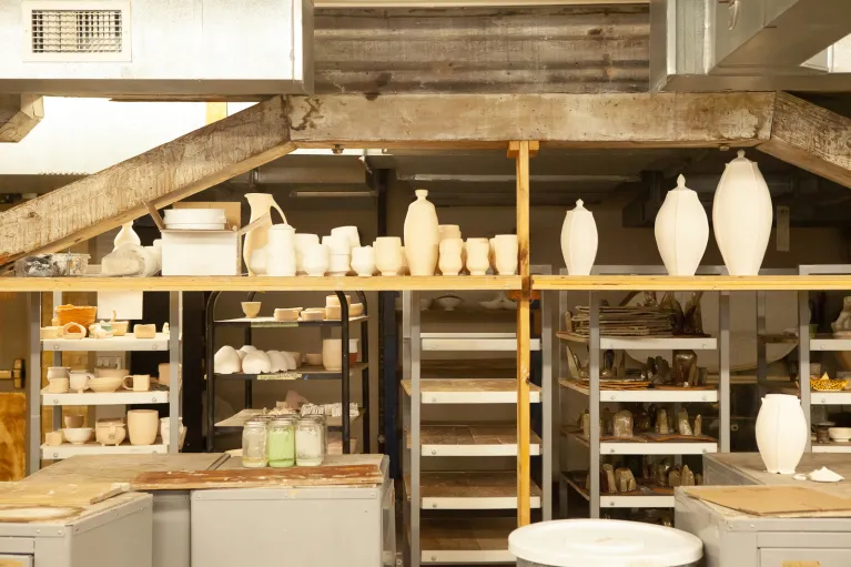 Fully equipped ceramic facility with capacity to create anything from miniature works to 6’ tall sculpture with every diverse firing process; Electric, Gas, Soda and Wood. Additionally, we are a sustainable studio with access to unlimited clay for students to create at no additional cost. To compliment the hand making areas, the studio is supported by mold making, CNC and digital technologies to bring 3D printing and advanced technology into your studio process.