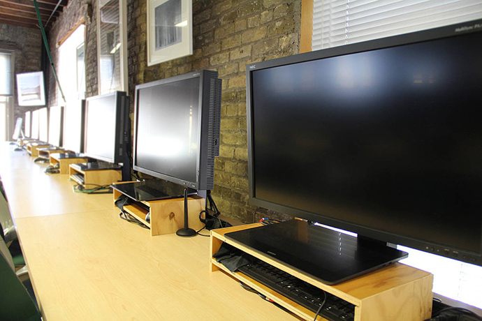 Over 30 professional graphic design monitors for you connect your laptop to are available to all students. Maximize your digital artspace with both 4K and 1080p options.