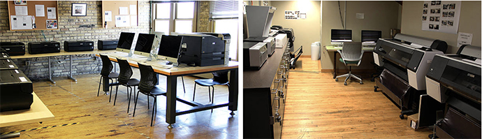 The Digital Lab has 8 Epson P800 printers, 3 large format printers and 1 laser printer available to students. Photographers, Illustrators or Graphic Designers have access to professional tools for any small, medium, or large format printing needs.