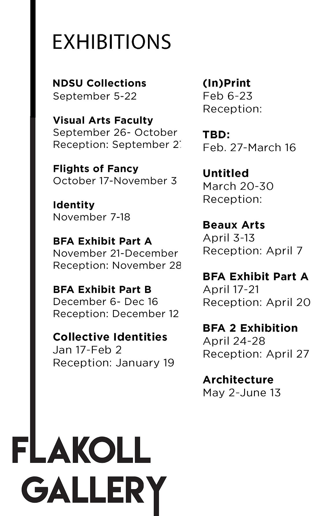 Exhibition Proposals are Open to Faculty, Students and in the Community in May of each year. Exhibition Proposals can be submitted to james.faris@ndsu.edu.