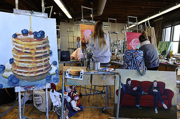School of Design, Architecture and Art Home Programs Programs Menu Graphic Design & Illustration Art Education Apparel, Retail Merchandising, and Design Architecture Landscape Architecture Interior Design Art & Design + Back to level 1 Admission Our Community Our Community Menu Faculty and Staff Faculty and Staff Menu Michael Strand Ben Bernard Alumni Alumni Menu April Lipatan Bea Weber Carlos Montoya David Sauvageau Douglas Hanson Doug Wild Emily Neuenschwander Gabriela Baierle Joan Floura Jessica Watcher Jordan Nelson Kene Okigbo Kristi Hanson Matthew Neururer Back to level 1 Donate Painting Studio Painting Studio Beautiful lofted ceiling space with fantastic light and both collective and individual spaces. We are dedicated to sustainability and our painting studio is equipped with a solvent reclaim system.