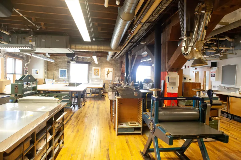 One of the finest Printmaking facilities in the country, the studio is equipped to support work across processes including, Letterpress, Etching, Lithography, Screen-printing and Relief. The excellent hand studio equipment is integrated with technology including CNC, 3D printing, Laser Cutting and other processes that expand your capabilities through combining digital and handmade works.