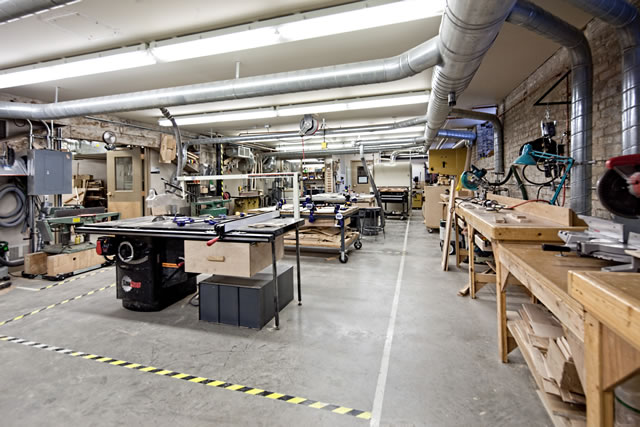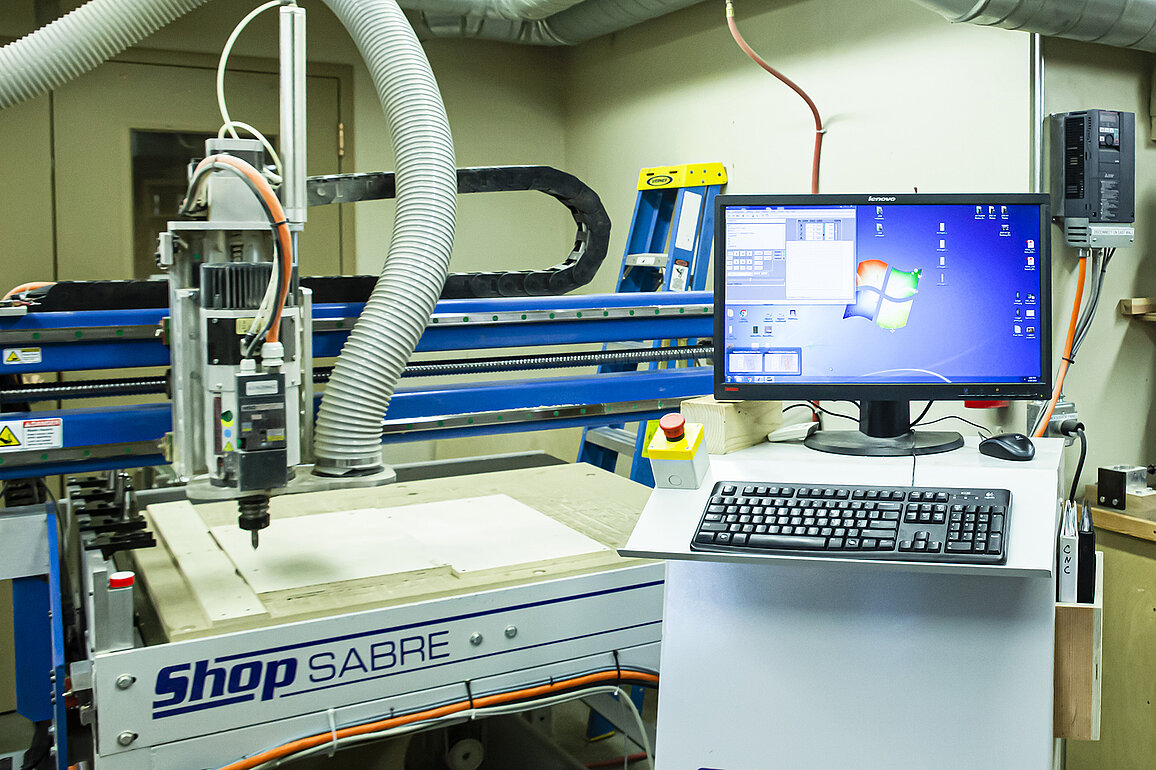 Located in the basement of Renaissance Hall, the woodshop is staffed by skilled technicians and contains a variety of hand and power tools. Available tools include table saws, chop saws, drill press, band saw, planer, a CNC router, hand-held CNC routers and many other woodworking tools.