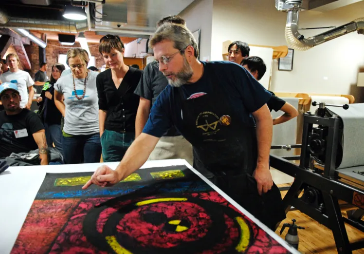 The Printmaking Education and Research Studio (PEARS) program promotes printmaking production, education and innovation in the Midwest. The studio, sponsored by NDSU Division of Fine Arts and Department of Visual Arts, emphasizes new work, ideas and methods, and facilitates interaction among a diverse audience; the studio strives to be an advocate for understanding the past and shaping the future of creative printmaking.