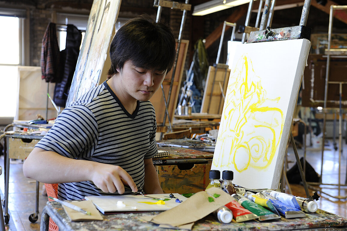 Art & Design + Home School Academics Academics Menu Bachelor of Arts / Science (Art and Design) Bachelor of Art Education Bachelor of Fine Arts Bachelor of Science (Apparel, Retail Merchandising and Design) Master of Science in Merchandising Student Resources Apparel, Retail Merchandising and Design Art Education Graphic Design & Illustration Practice Back to level 1 Our Community Our Community Menu Faculty and Staff Faculty and Staff Menu Sara Sunderlin Ann Braaten Jaeha Lee Michael Strand Kimble Bromley Elizabeth C. Crawford Meghan Duda Amanda Heidt Dionna Martel Anthony Faris Kent Kapplinger Jeff Knight Ana Mitrovici Andrew David Stark David Swenson Eric Syvertson Emily Vieweg Lisa Eggebraaten Alumni Advisory Board Back to level 1 Facilities Facilities Menu Wood Kiln Renaissance Hall Digital Design Studio Ceramics Studio Painting studio Printmaking Studio Photography Studio & Darkroom Woodshop Sculpture Studio LAAVA Lab Back to level 1 Student Experiences Student Experiences Menu Fashion, Apparel & Business Organization (FABO) Professional Organizations Study Tours Study Abroad Back to level 1 Student Work About About Menu Contact About the Department Department of Architecture Department of Landscape Architecture School of Design, Architecture and Art Back to level 1 APPLY Visiting Artists Painting studio Painting Studio Beautiful lofted ceiling space with fantastic light and both collective and individual spaces. We are dedicated to sustainability and our painting studio is equipped with a solvent reclaim system.