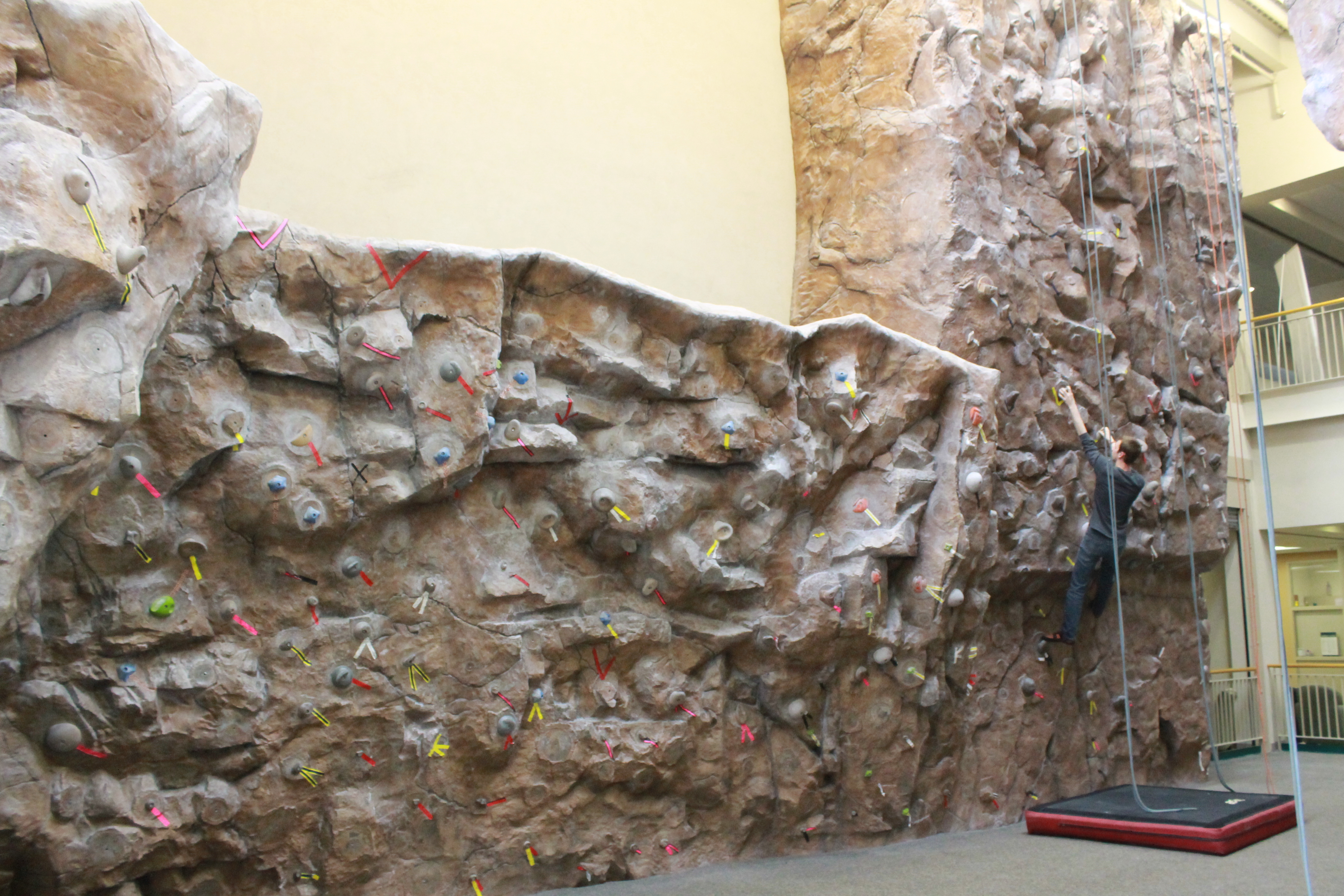 The Wellness Center is a student-fee supported facility committed to promoting a culture of life-long wellness by developing innovative programs and services for the NDSU community. We provide a variety of fitness equipment, multiple recreation and intramural programs, a state-of-the-art aquatic facility and programs, and affordable and convenient child care. The facility includes strength and cardiovascular equipment, 33 foot climbing wall, four racquetball courts, three basketball courts, group fitness studio, personal training studio, cycling studio, martial arts studio, multipurpose gym, suspended walking/running track, and locker rooms. The 28,547 square foot aquatic addition opened in 2016 and includes a six-lane, 25-yard lap pool, leisure pool with activity space for volleyball and basketball, a vortex circle, wet classroom, gender-neutral locker rooms, gas fire pit, and sauna.