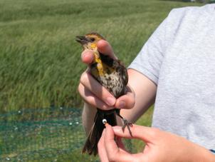 Female yellow-headed blackbirds were captured using nest traps to collect blood for WNV antibody detection and immunity quantification. Blood serum was tested for WNV antibodies using competitive enzyme-linked immunoabsorbent assay (ELISA) specifically designed to detect WNV antibodies in blood serum from avian species. To assess variation in immune function among females, I created blood smears and obtain ratios of immune system cells (heterophils to lymphocytes). Prior to release, each female was banded with a standard Fish and Wildlife Service aluminum band along with a unique color-band combination for individual field identification. I located and monitor nests of each banded female yellow-headed blackbird to determine nest success and nestling performance and how differences in carotenoid levels influences reproduction. Male yellow-headed blackbirds and other members of the Family Icteridae (red-winged blackbirds, common grackles, etc.) were also captured using live funnel traps for WNV antibody detection.